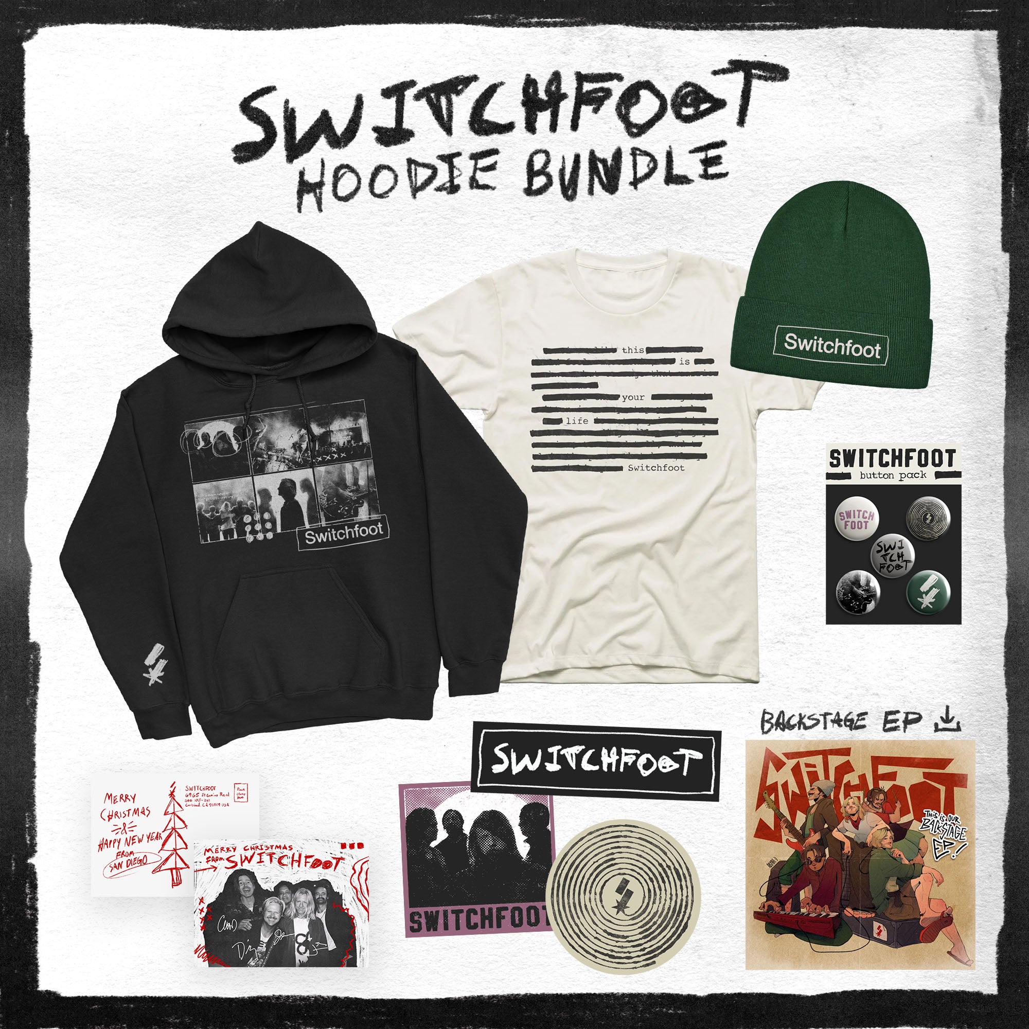 The 2025 Hoodie Bundle includes: The Souvenirs Hoodie, This is Your Life Tee, Evergreen Knit Beanie, Button Pack, Sticker Set, Autographed 2025 Christmas Card & Backstage EP #14 digital download featuring 3 brand-new acoustic recordings: